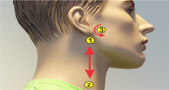 Pontos 1 e 2: na verdade, não se trata de pontos, mas de uma linha – que passa por trás do lóbulo da orelha para o centro da clavícula.