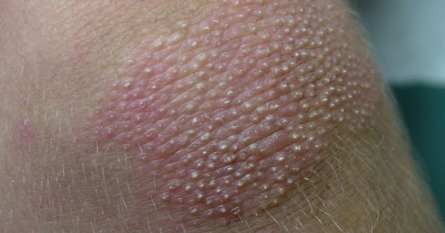 Como uma reação ao glúten, o corpo pode se manifestar por meio de coceira e irritação na pele, erupções cutâneas, eczema, psoríase, queratose pilar ou erupções cutâneas em geral.